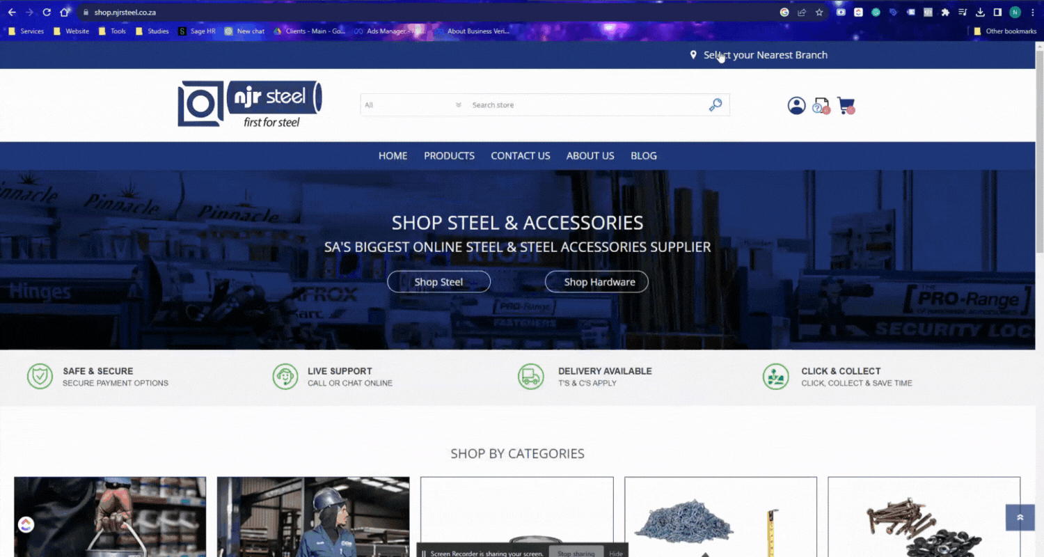 When you visit the NJR Steel Online Store, you have the unique advantage of selecting your local branch's online store. This ensures that you receive the same trusted, local service you've come to rely on, no matter where you are in South Africa.