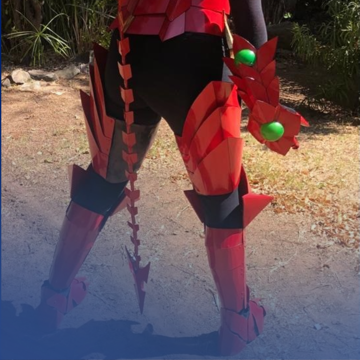 All the armour's patterns were originally designed, measured, cut out, cleaned, polished, and colour-prepped by me — no external templates were used. The hinges used for the mobility of the arms and shoulders were also custom-made using cut-offs from a steel bar from a previous project.